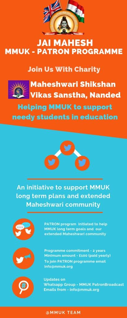 MMUK Patron Program is to help the community by means of charity both in India and UK. This fantastic campaign of “MMUK Charity Patrons” is proposed to help MMUK growth and sustain our objectives.